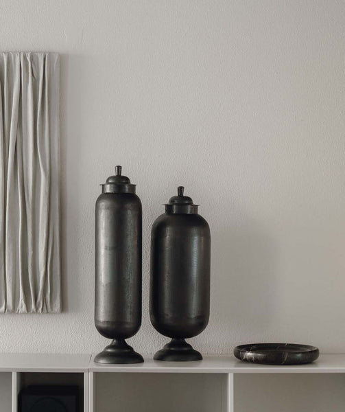 Dekoration spiller en afgørende rolle i at give dit hjem karakter, stil og personlighed. Dekorationsobjekter giver dig mulighed for at vise din personlige stil og smag.Korrekt placerede dekorationsobjekter kan hjælpe med at skabe balance og proportion i rummet. Et centralt placeret kunstværk over en sofa eller en gruppe små objekter på en hylde kan skabe visuel harmoni. Dekorative vaser kan være en fantastisk måde at transformere indretningen i dit hjem og skabe et visuelt imponerende statement piece. Disse kunstværker i sig selv er ikke kun praktiske beholdere til blomster eller grene, men også dekorative elementer, der kan forme indretningen og tilføre elegance og karakter til ethvert rum. Hos Atelier du Noir finder du et bredt udvalg af vaser og krukker. Her kan du blandt andet finde ler vaser, ler krukker, alabast stager, marmor vaser, glas vaser, metal vaser mm.