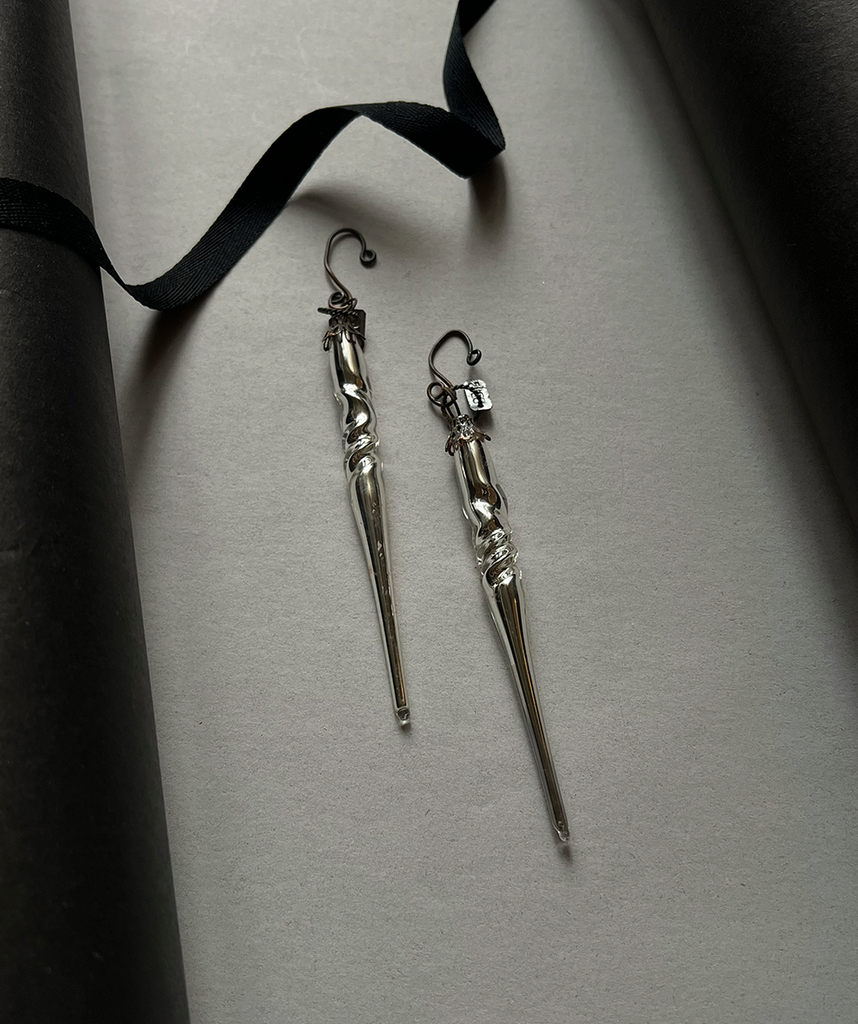 Tilfør julen elegance med disse smukke mundblæste og håndsnoede glasistapper. De er fastgjort med en metalklemme, så de kan hænge på juletræet.