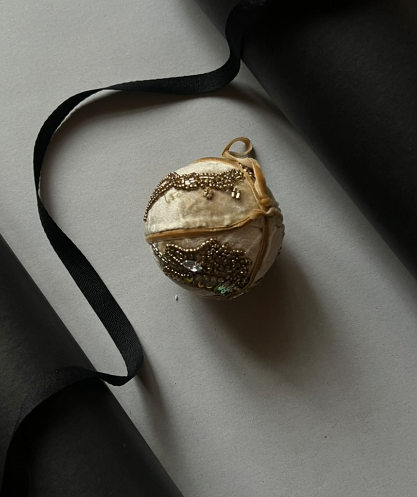 Skab en elegant jul med denne smukke velour julekugle i guld.