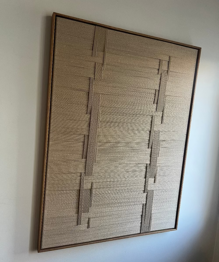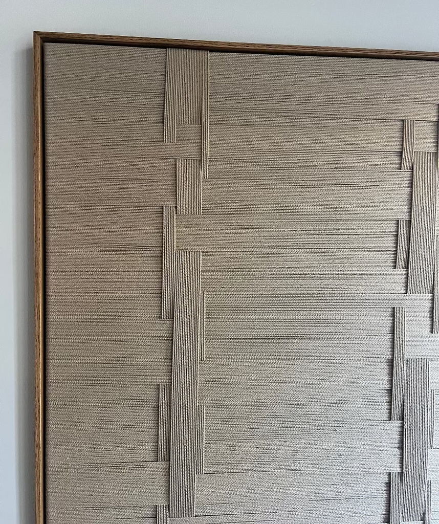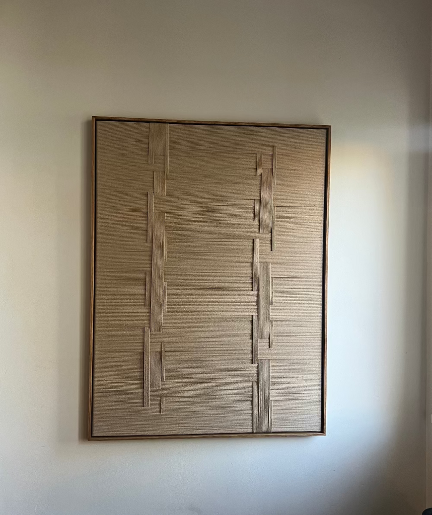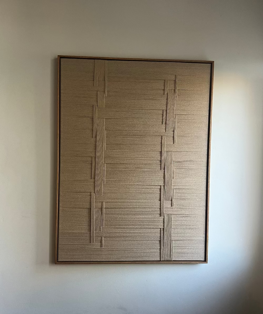 No. 11 er et smukt og minimalistisk kunstværk i snor. Kunstværket er indrammet i en brun ramme i olieret egetræ, som tilføjer en tidløs og organisk ro til hjemmet.