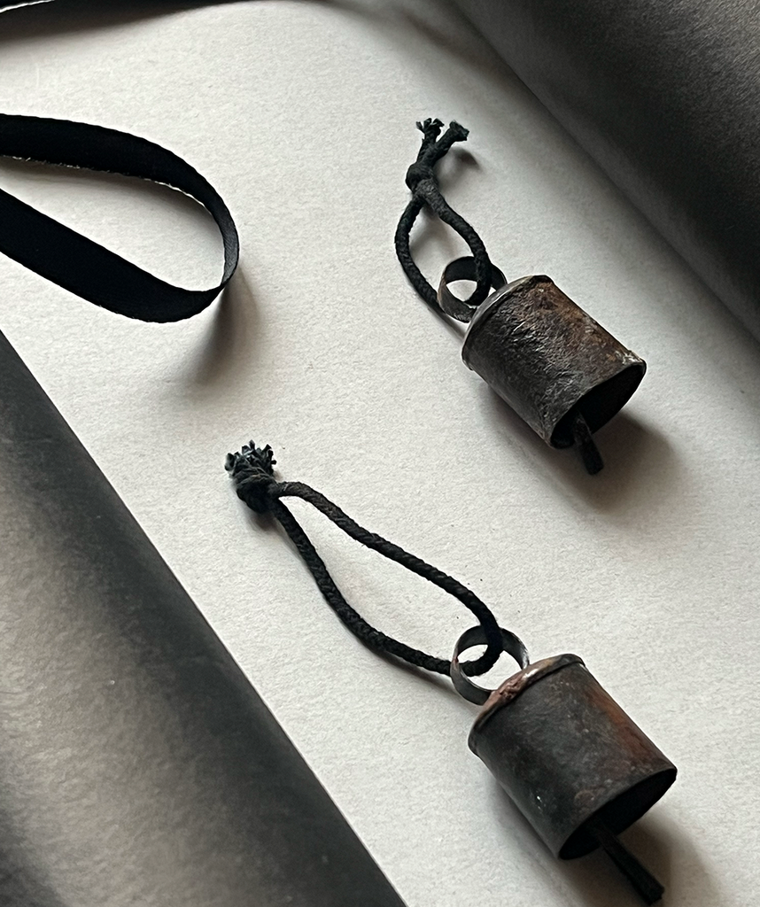 Rustikke gamle små klokker i jern og med sort jute snor. Klokkerne bruges i Indien til at hænge på gedernes halsbånd. Vi har blot tilført en lille sort jute snor og derved får klokken mulighed for en anden anvendelsesmulighed i din indretning. Til jul er de skønne små klokker dekorative til juletræet eller til en vase med fyrgrene.