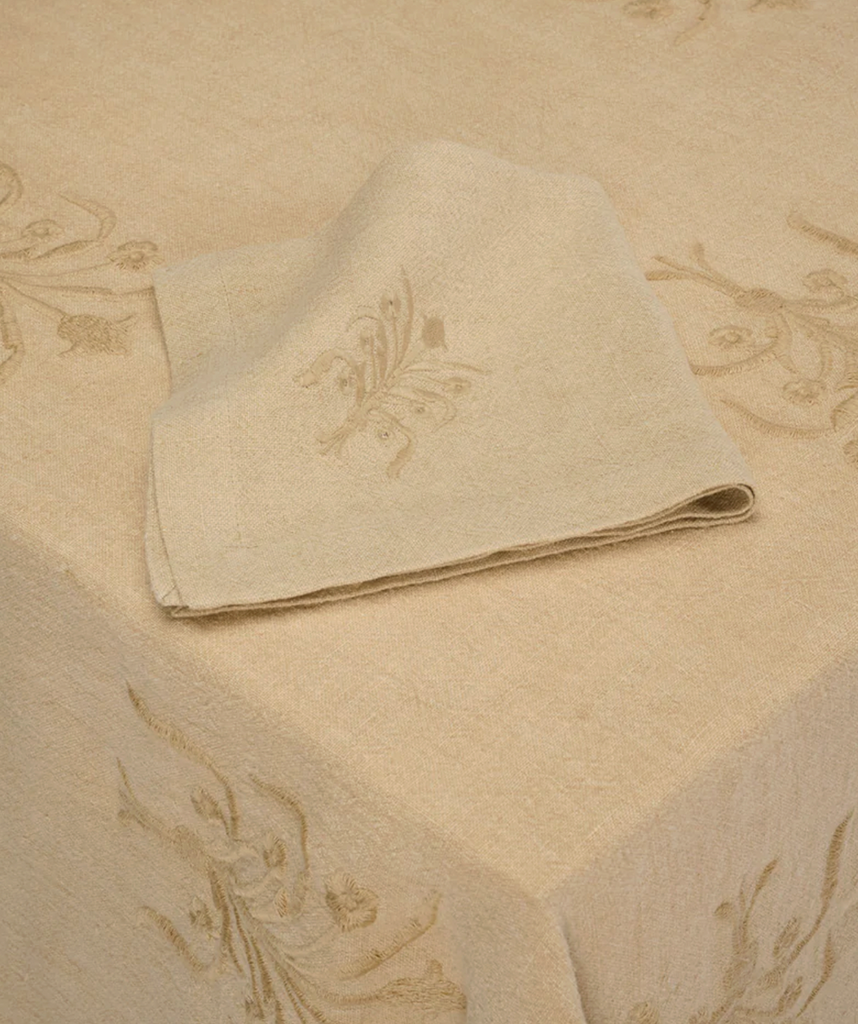 Cappelen Dimyr stofdug er vævet i hør med en dekorativ detalje i hvert hjørne. Dugen er oplagt til at dekorere et spisebord. Dugen er lavet i naturligt og ubleget hør.