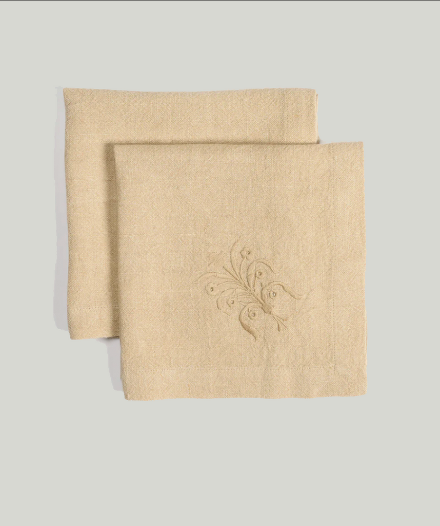 Cappelen Dimyr stofservietterne er vævede i hør med en dekorativ detalje. Servietterne er oplagte til at dekorere og dække et middagsbord. Servietterne er lavet i naturligt og ubleget hør.