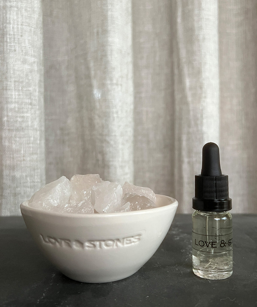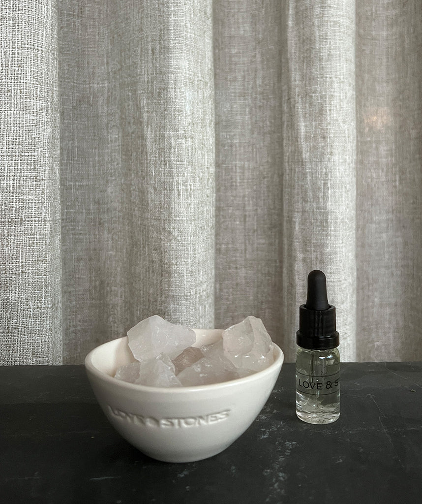Materiale: Håndlavet keramisk skål med rå krystalsten
